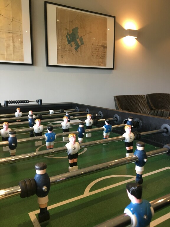 Il y a une plaine de jeux avec trampoline, quistax et terrain de football.